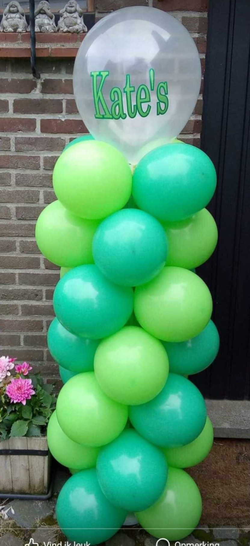 kleur voor kop en voetstukballonnen : goud,lime,zilver,donkerblauw,lichtblauw,roze,donkergroen,rood,wit,geel,oranje ,fuchia, rosegold, creme , zwart en paars.
