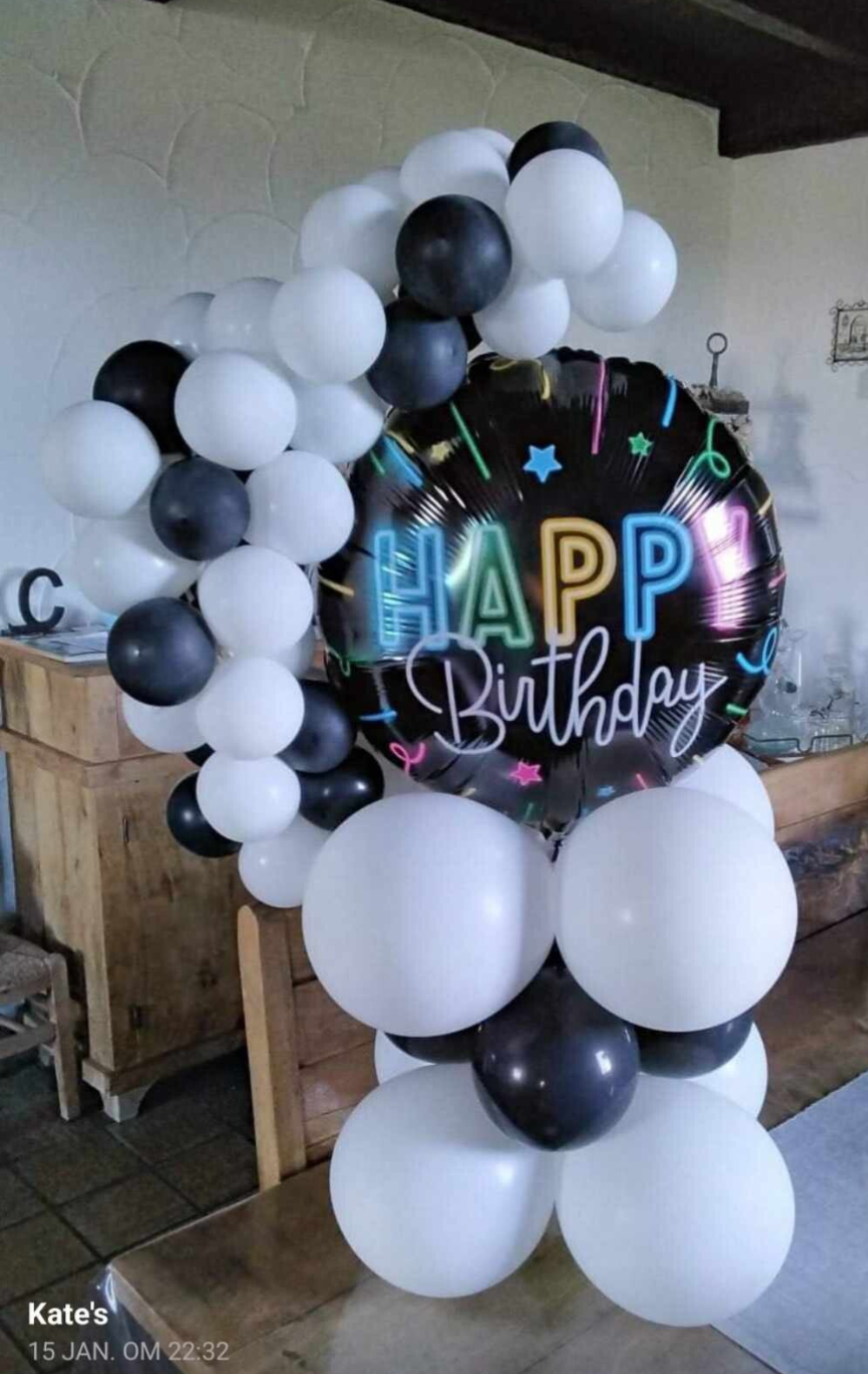Of aan een koord met een gewichtje onderaan ( gevuld met helium zodat de ballon blijft zweven)