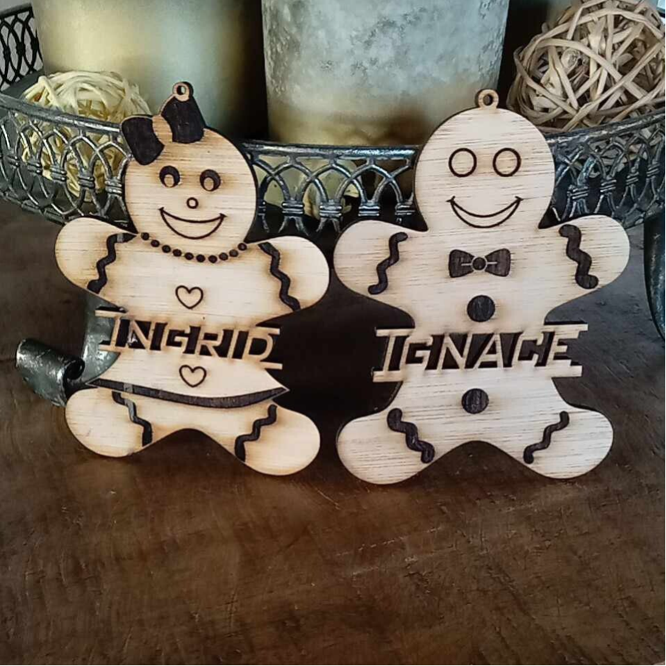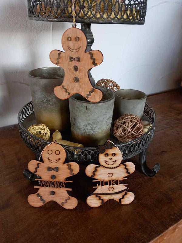 Houten kersthanger in de vorm van een gingerbread manneke .