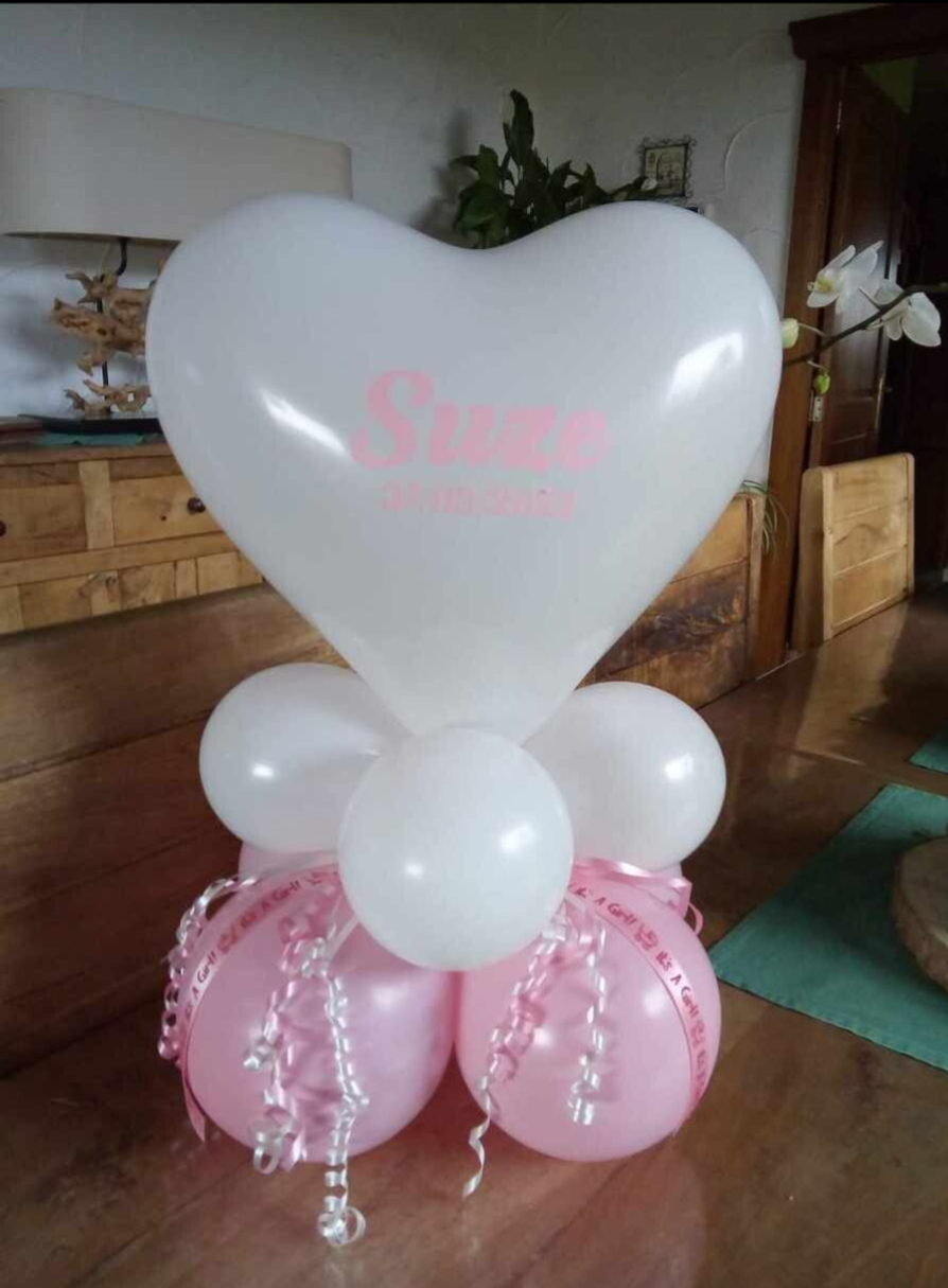 - 1 met een folieballon op het tafelstuk .Die moet apart worden meebesteld , zie link onderaan ! enkel in maat S of M)