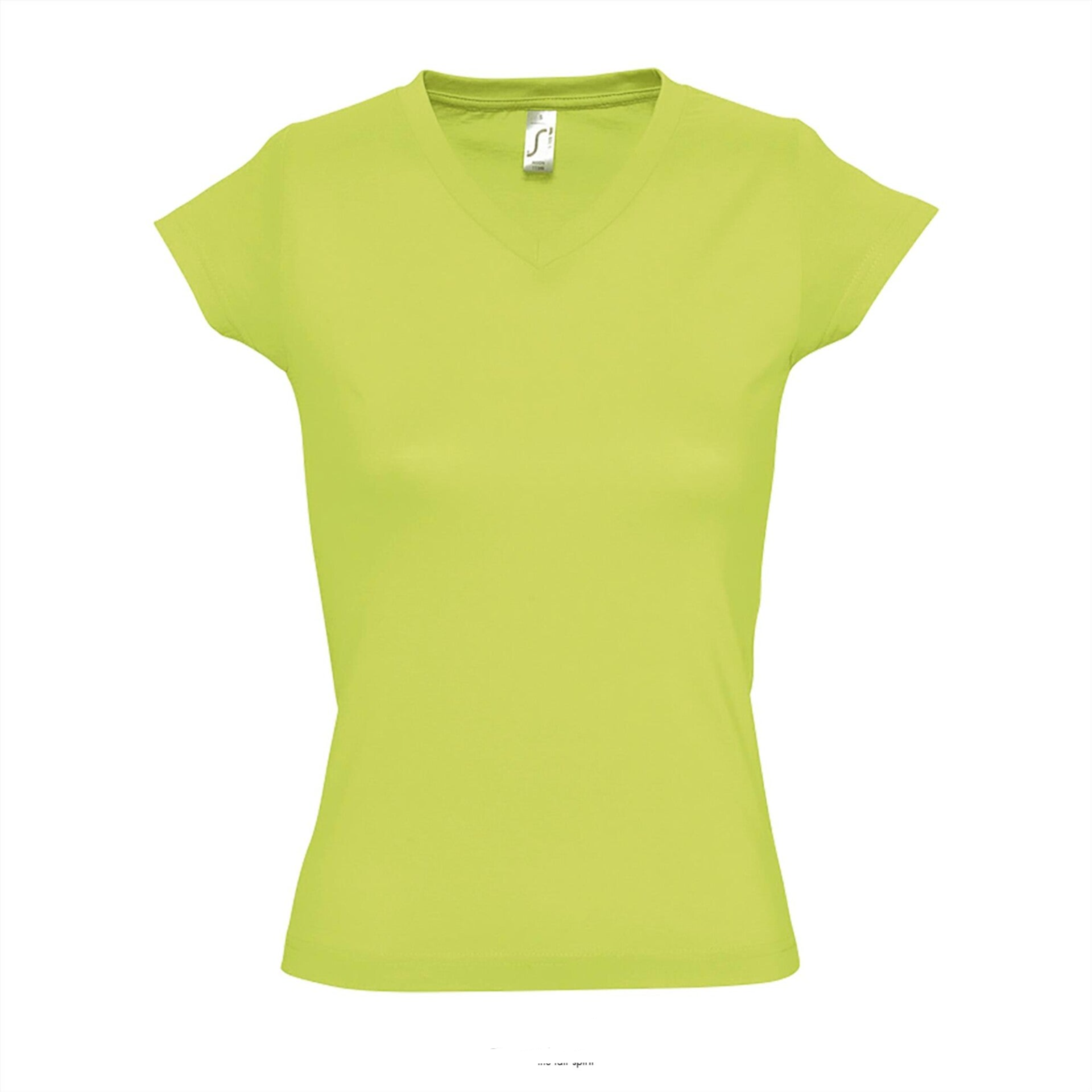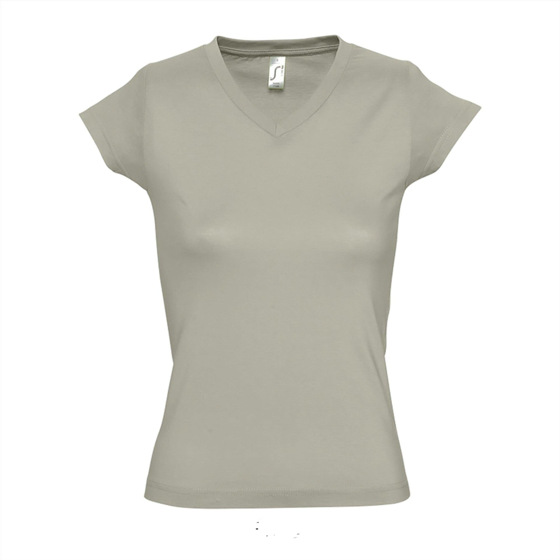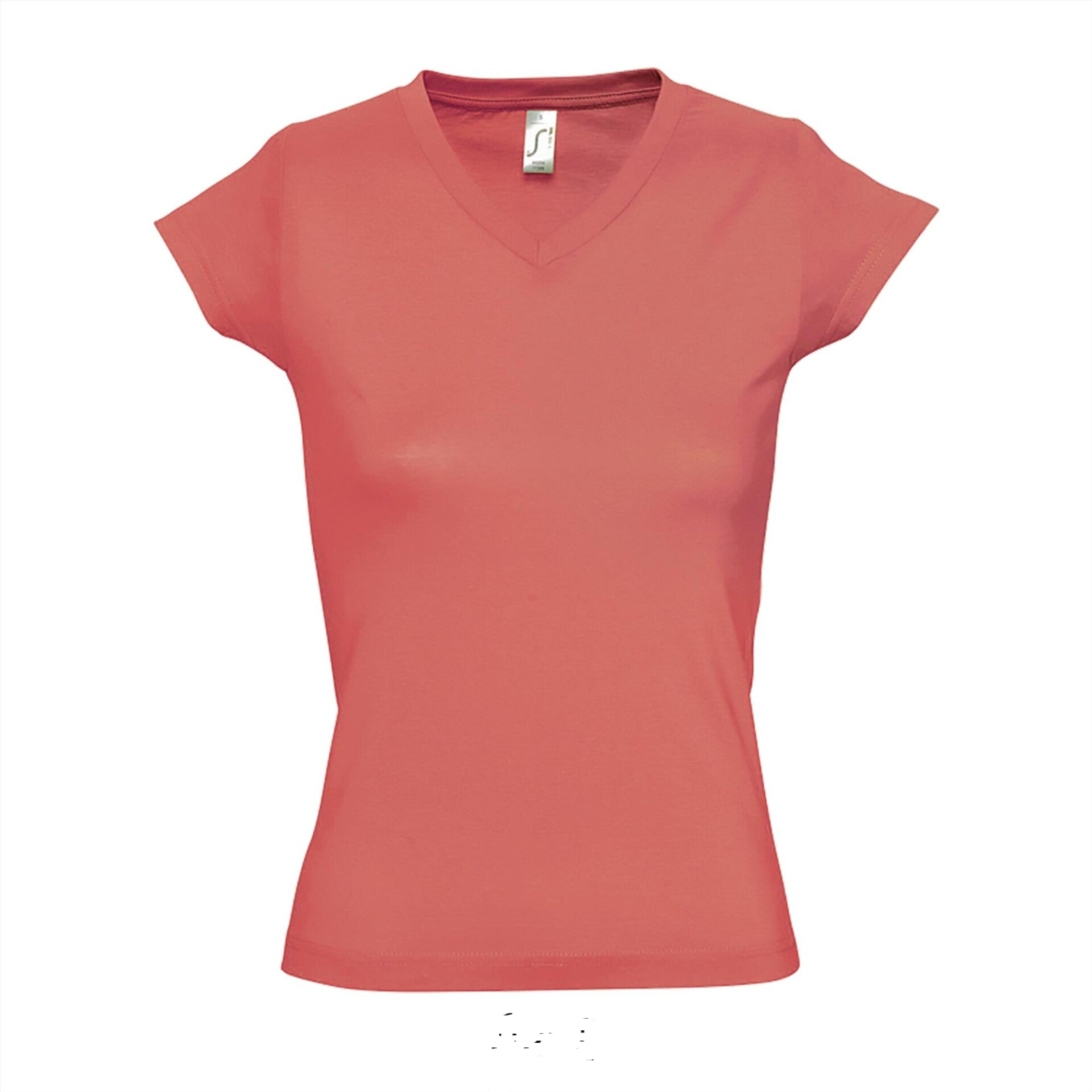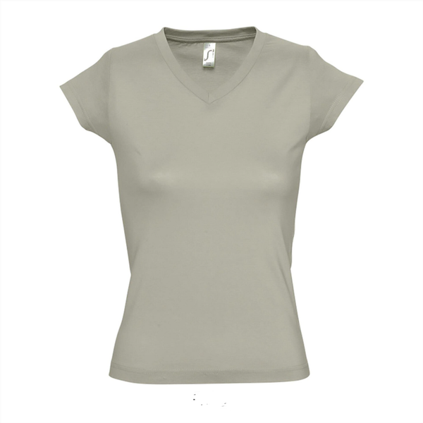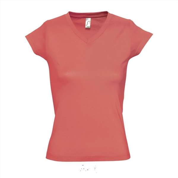 T - shirt met V- hals in 100% katoen , 150gr/m2 , short sleeve. licht getailleerd.