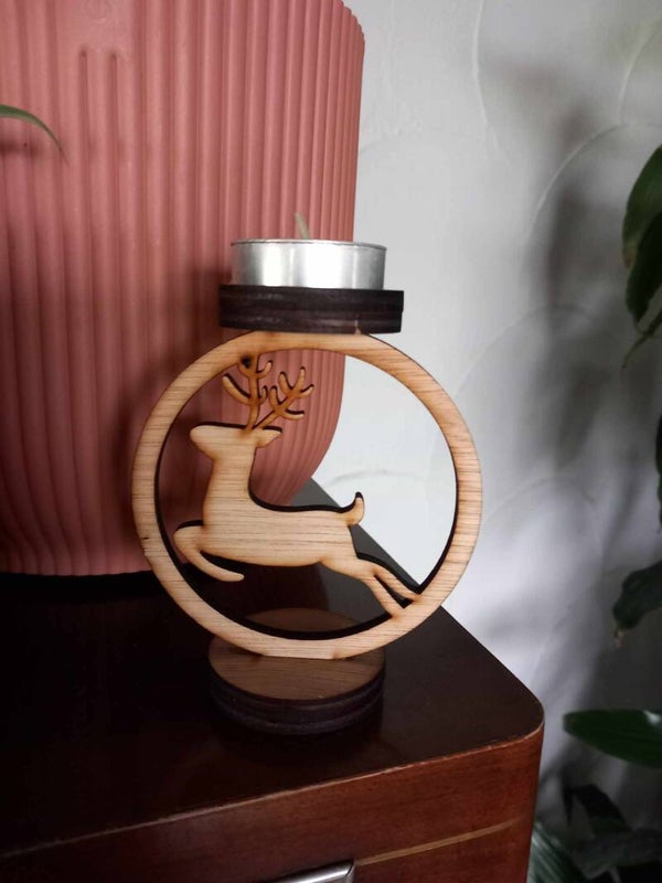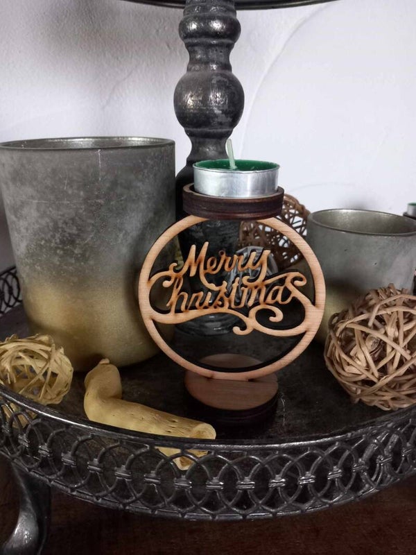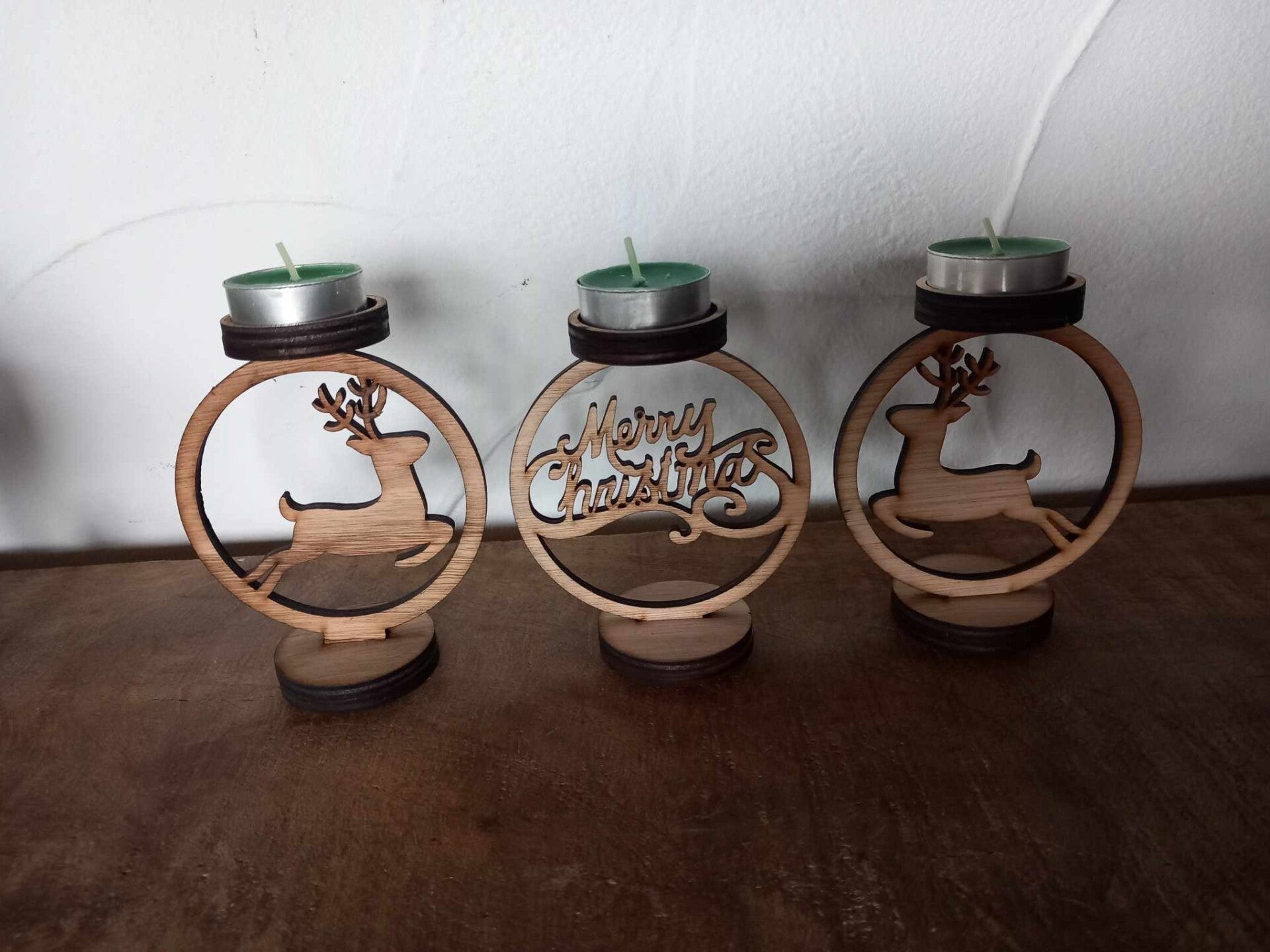 3 houten theelichtjes . Maken samen een mooi geheel om op de kersttafel,schouw,salontafel... te plaatsen .