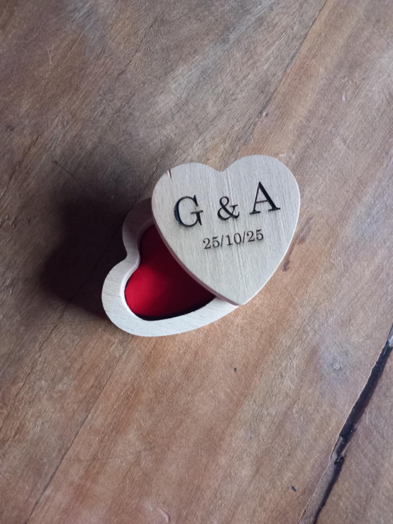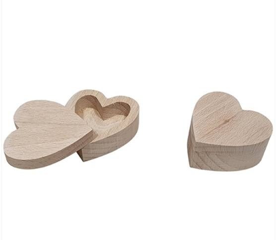 Houten kistje in hartvorm. Ideaal om de huwelijksringen in te steken.