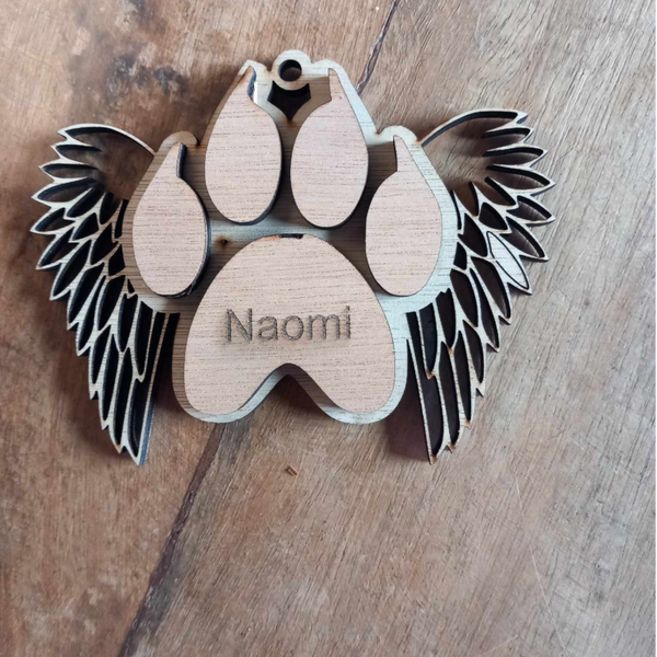 Houten herdenkingshanger met een basis pootafdruk van uw huisdier.