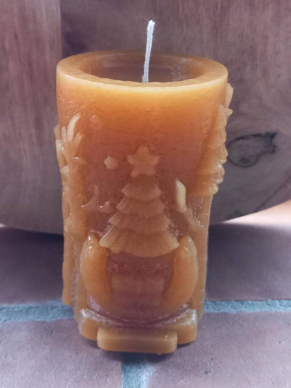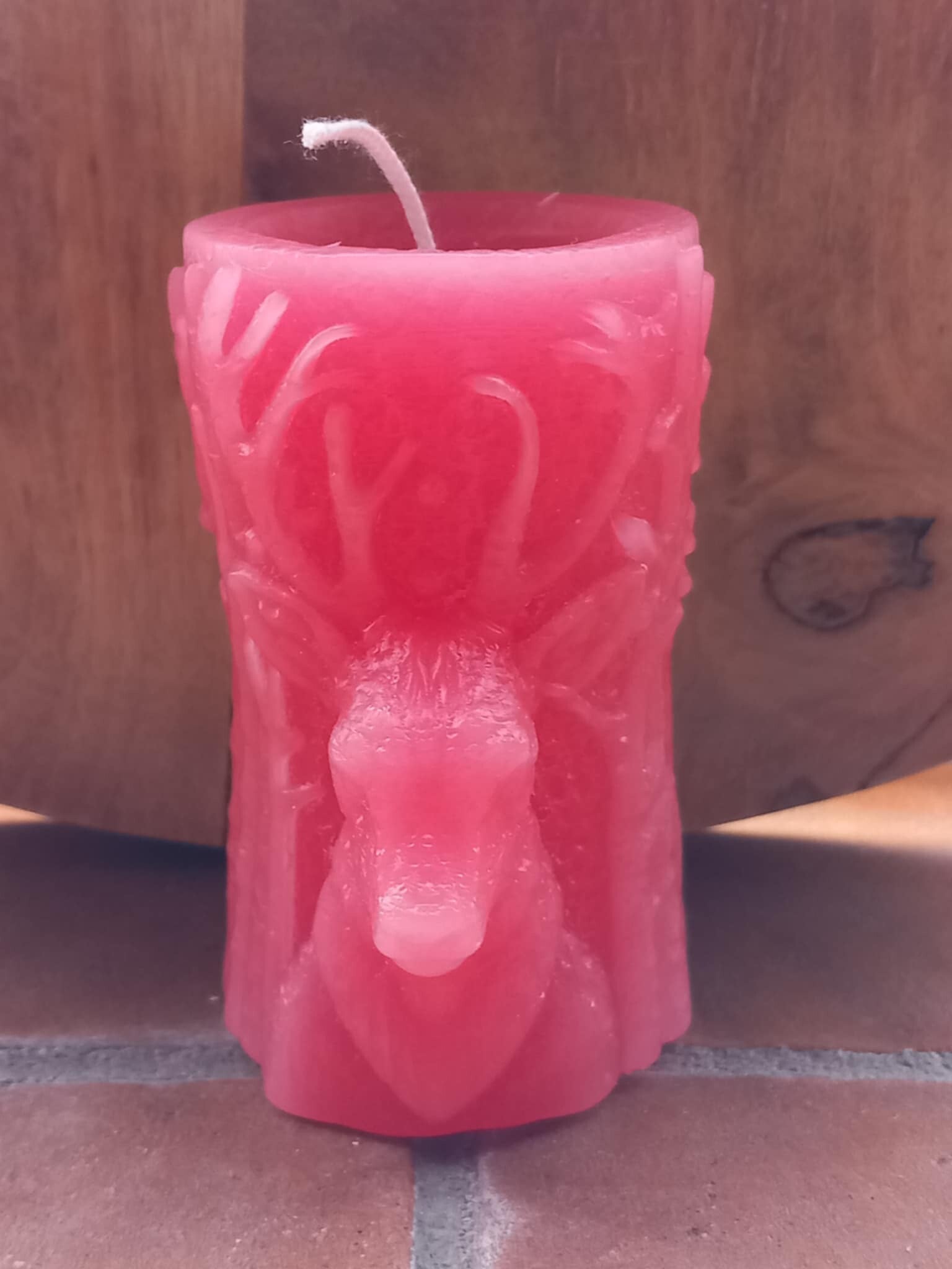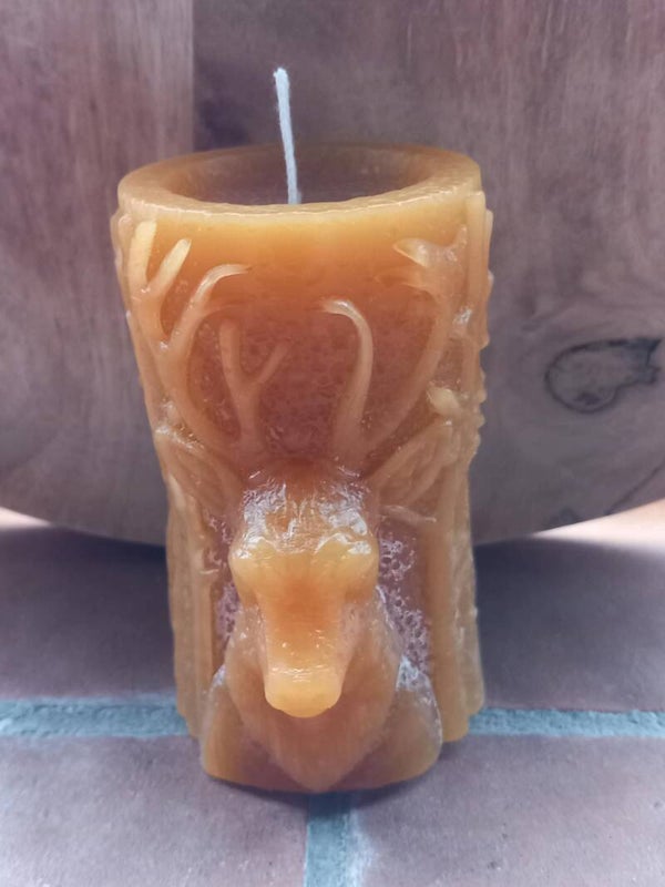Mooie stolp kaars met uitspringende rendier kop.