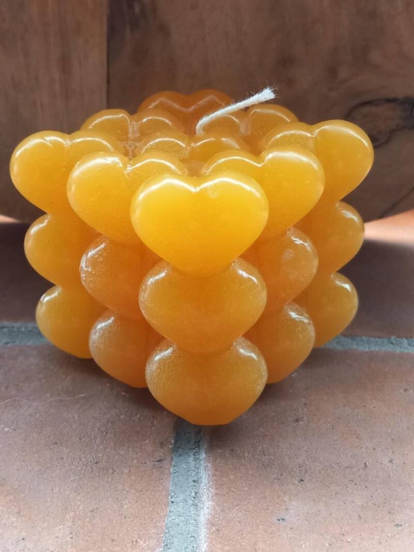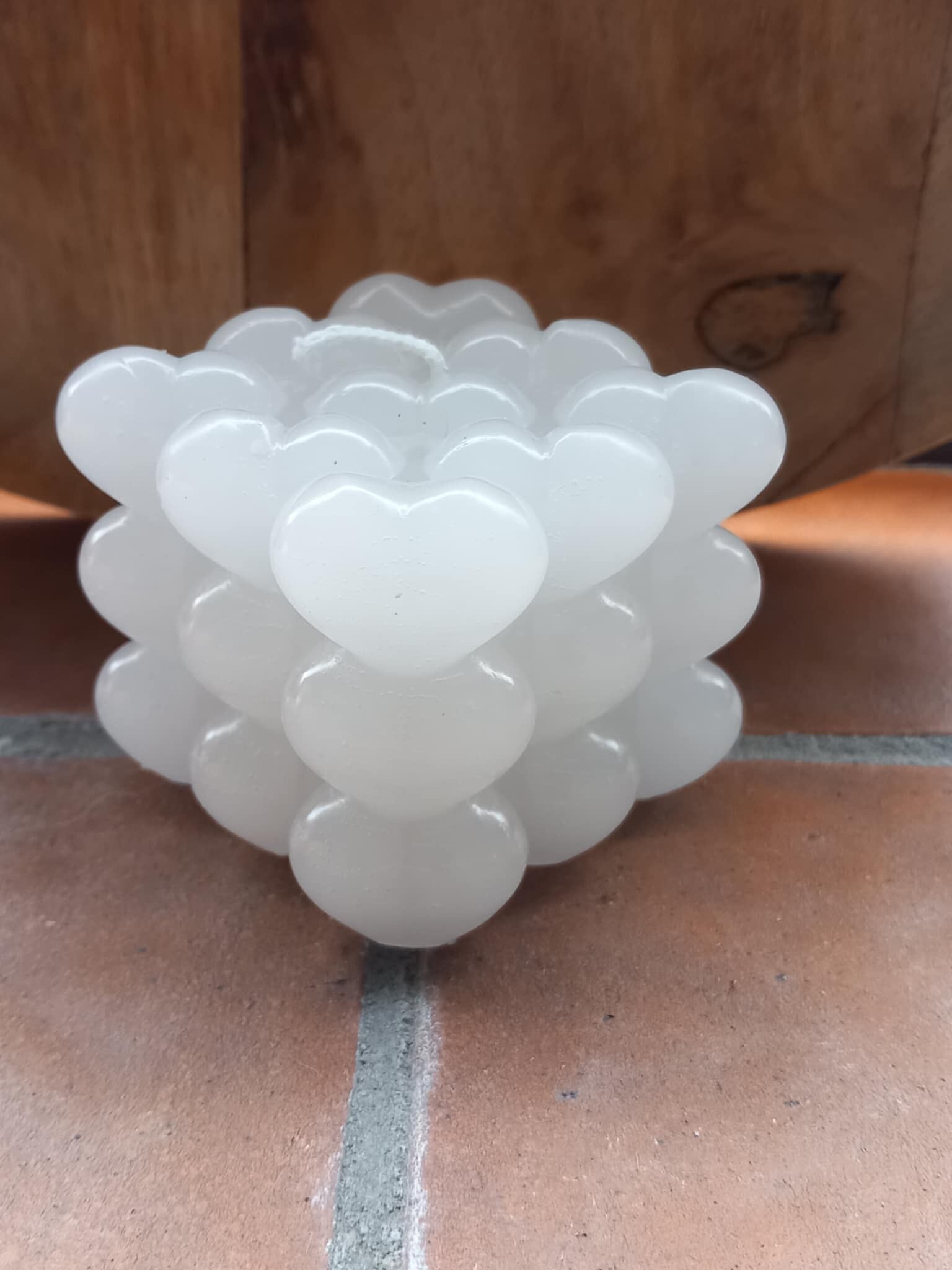 Een kaarsblok gemaakt met hartjes. uren brandplezier...