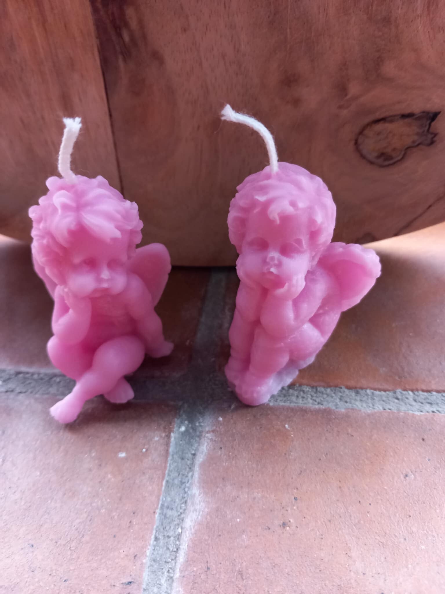 2 engeltjes zittend en nadenkend. supermooi en originele manier om een kaarsje te branden bij de foto van uw overleden geliefde...
