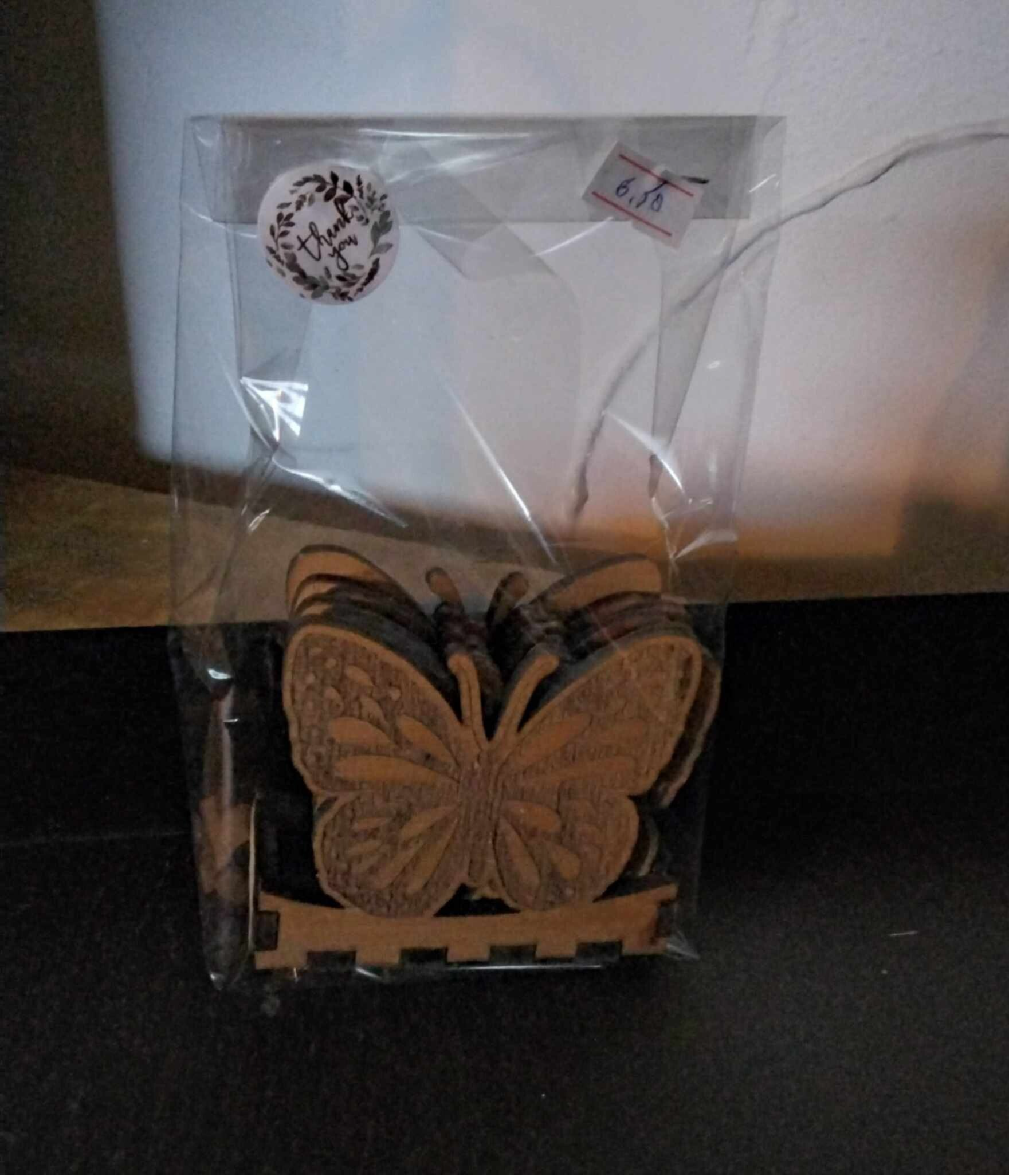 Een vlindervormig bakje met idem vlinder onderzetters.