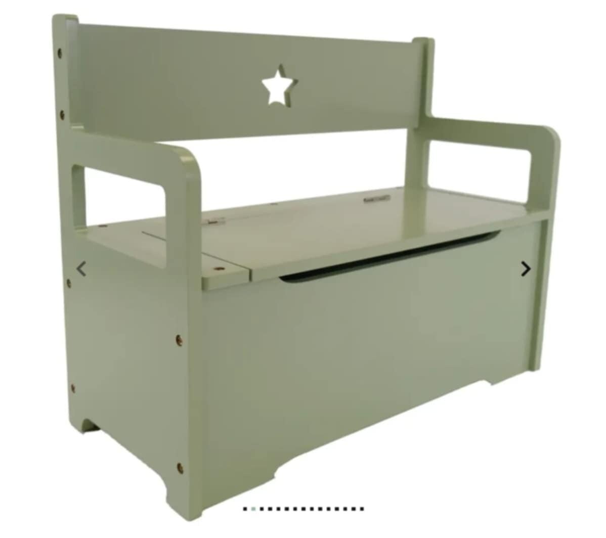 GEKLEURDE houten opbergbankje voorzien van naam . Kan NIET voorzien worden van illustratie naar geboortekaartje . kleur is lichtgrijs , retrogroen of retroroze.