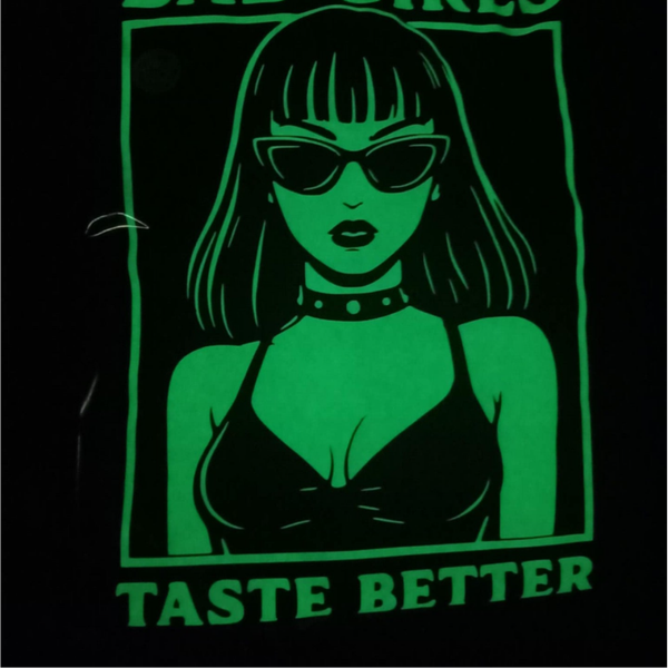 Met deze vinyl (witte tekst of illustratie ) die oplicht in de donker (groen), zelfs zonder lichten ....zal dit zeker lukken.